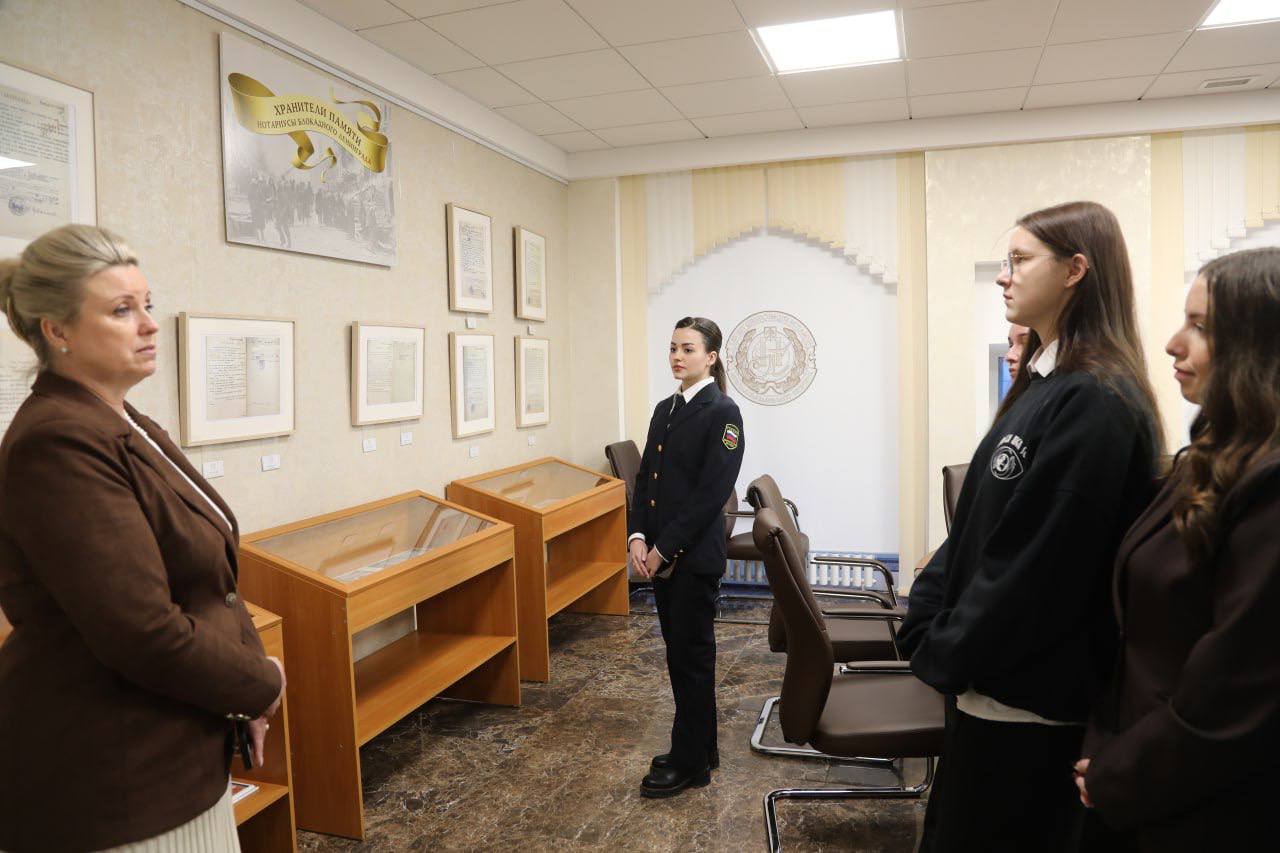 Студентам также провели экскурсию по Нотариальной палате и рассказали о работе нотариусов в разные времена: в наши дни, во время блокады Ленинграда и 160 лет назад, когда было принято Положение о нотариальной части.