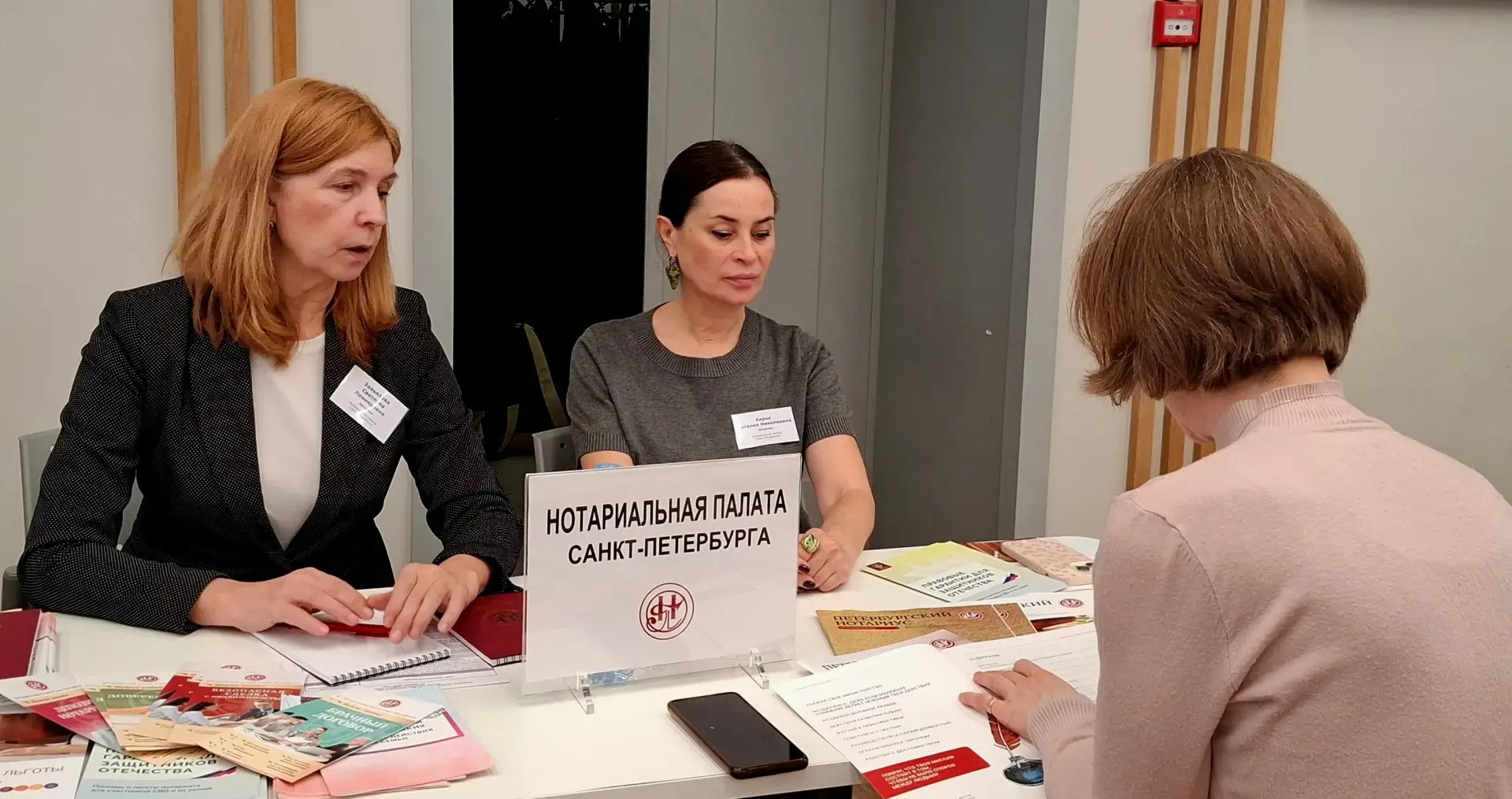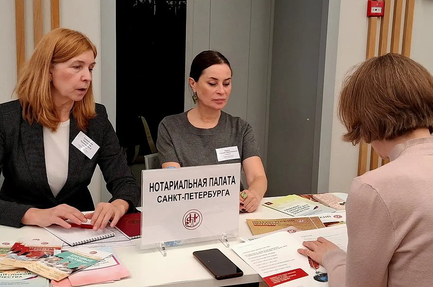 От Нотариальной палаты Санкт-Петербурга консультации проводили Светлана Завьялова и Наталия Карье. Петербуржцы обращались к нотариусам по вопросам оформления договоров купли-продажи и дарения недвижимости, завещания, получения наследства, расчётов через нотариальный депозит и не только.