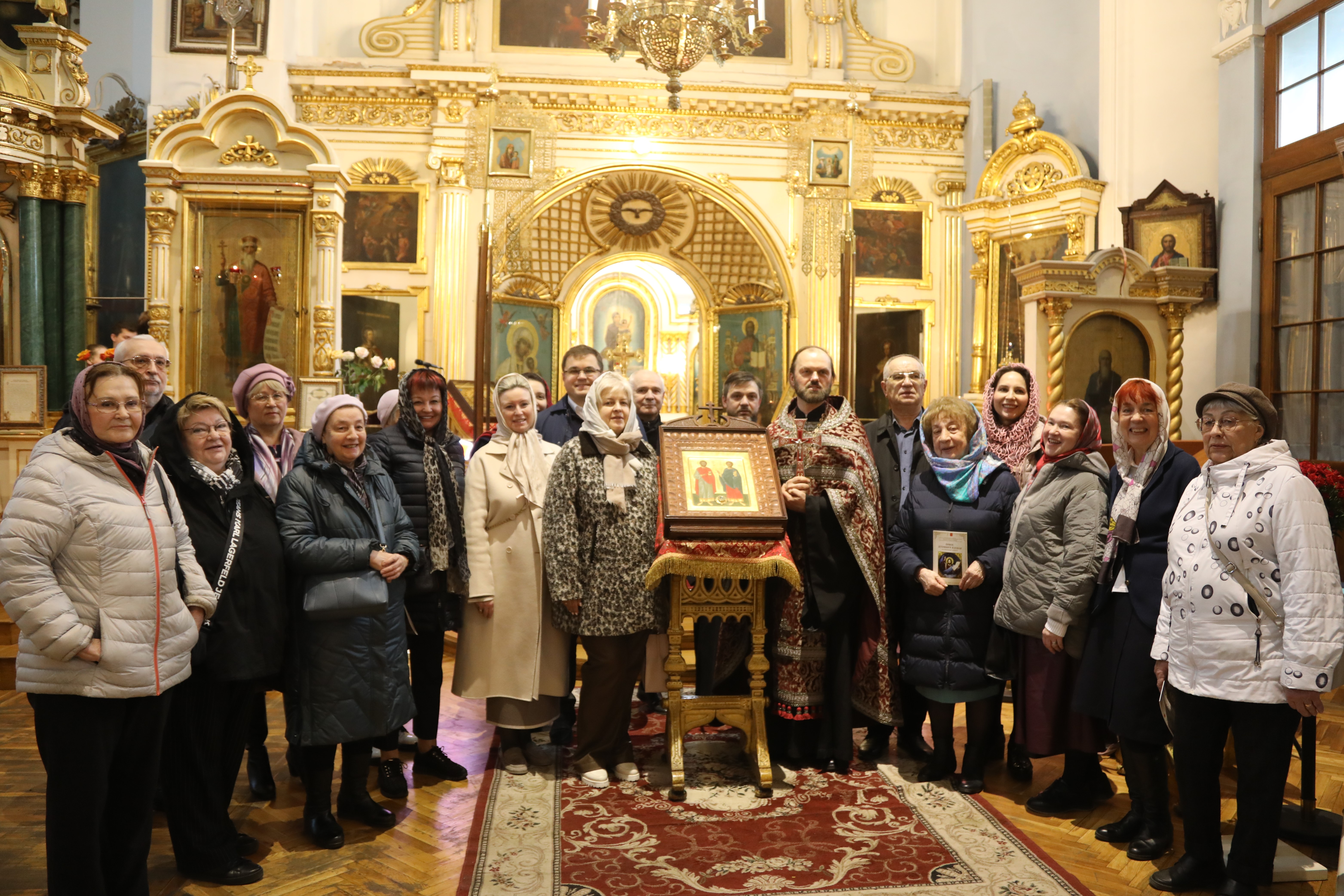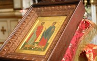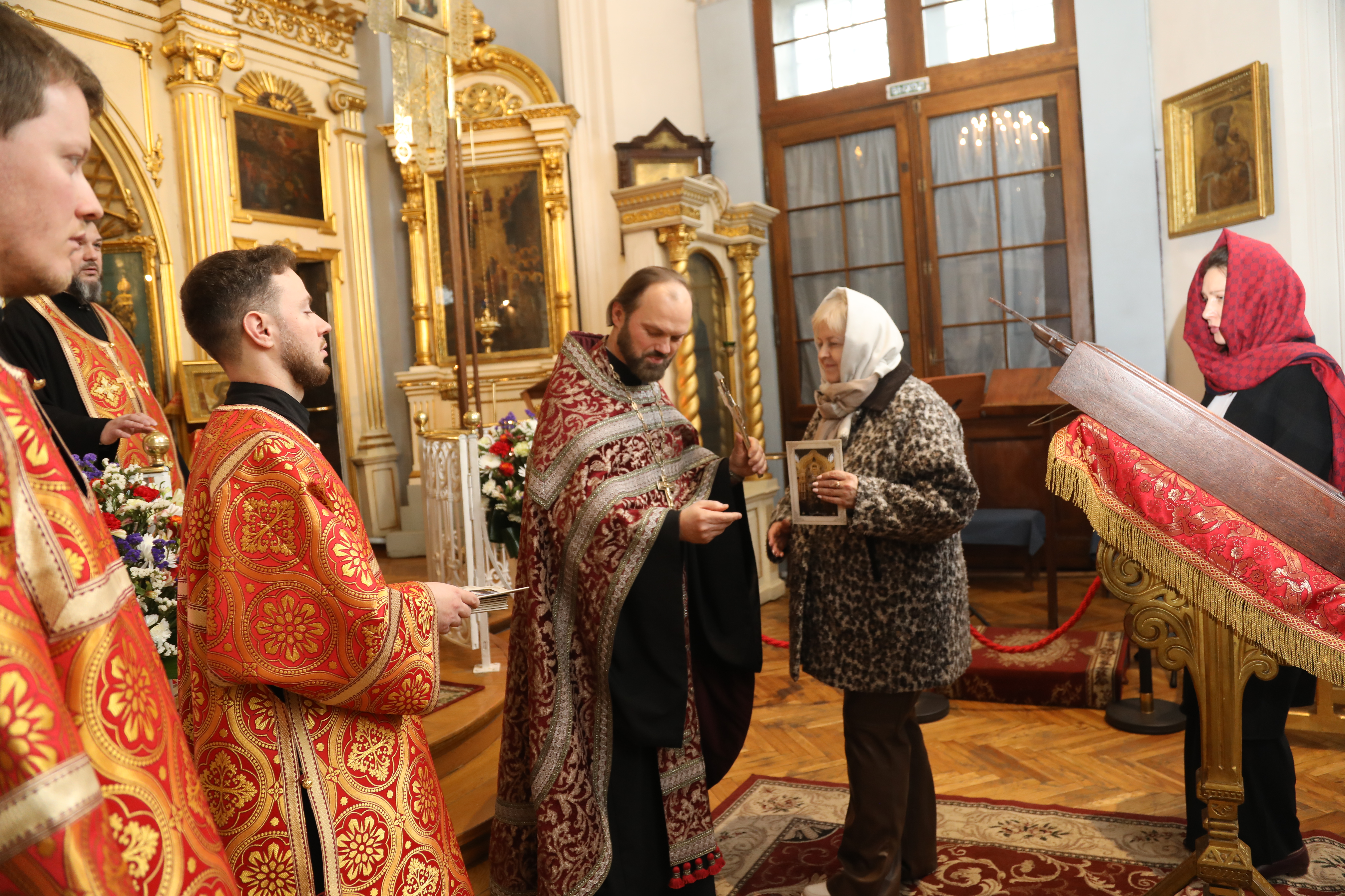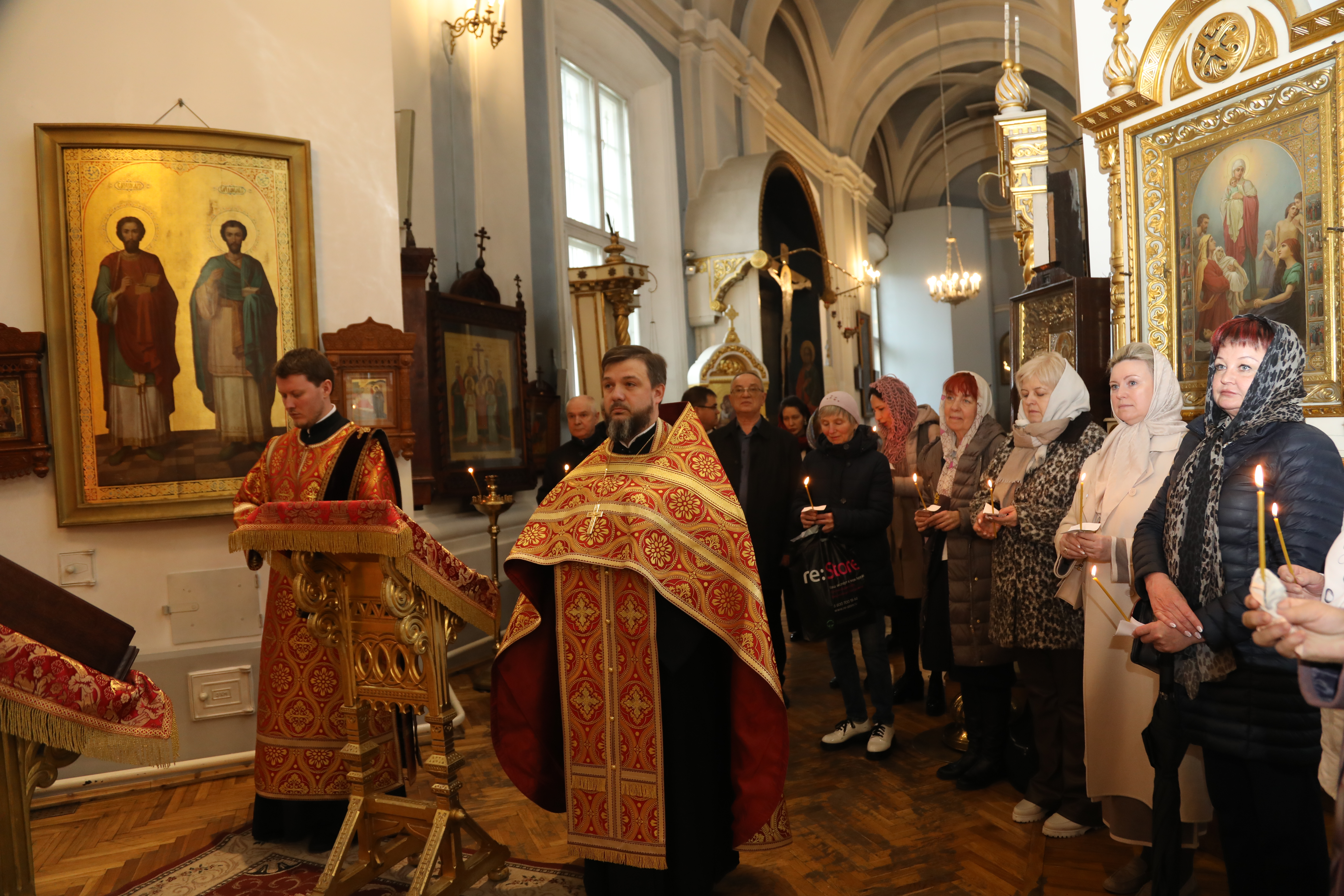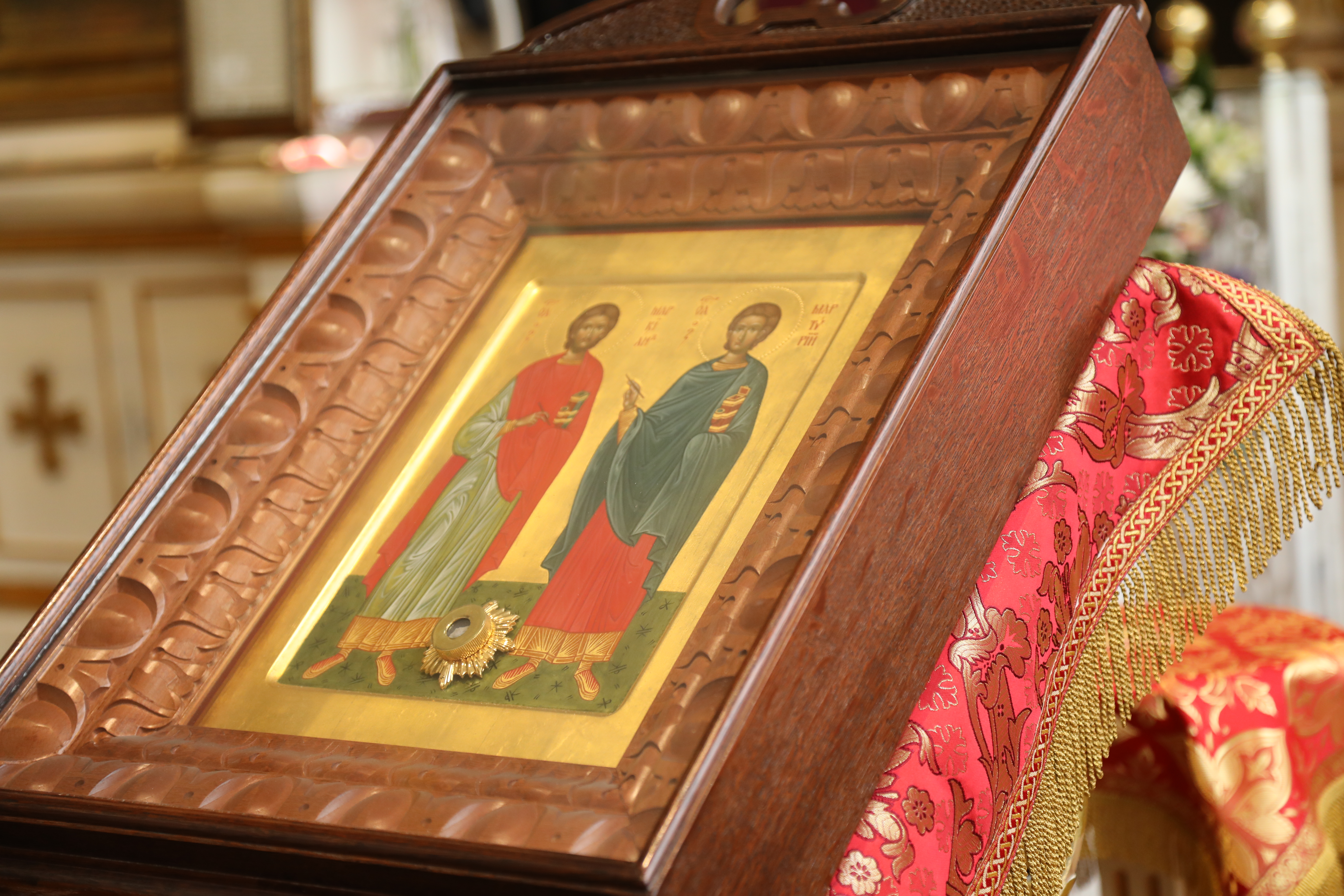 Для молебна в соборе выставили икону святых мучеников Маркиана и Мартирия — небесных покровителей нотариусов. На ещё одном аналое расположился синодик Нотариальной палаты Санкт-Петербурга.